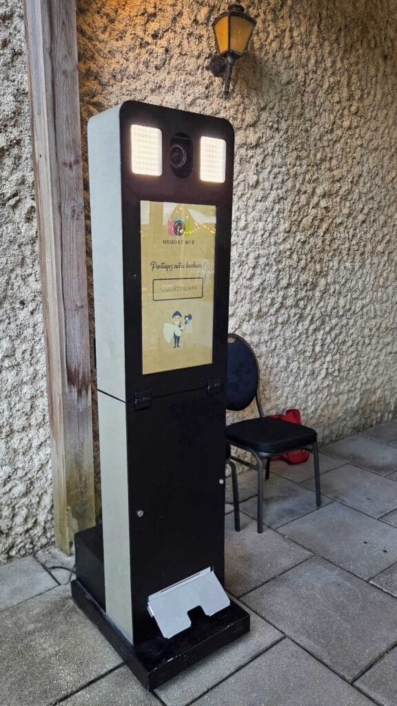 Plus communément appelé borne à selfie, le photobooth est comme un photomaton autonome avec tirage, impression sur place. Vous vous voyez dans un écran, on se cadre, on appui sur le bouton et le compte à rebours est lancé !